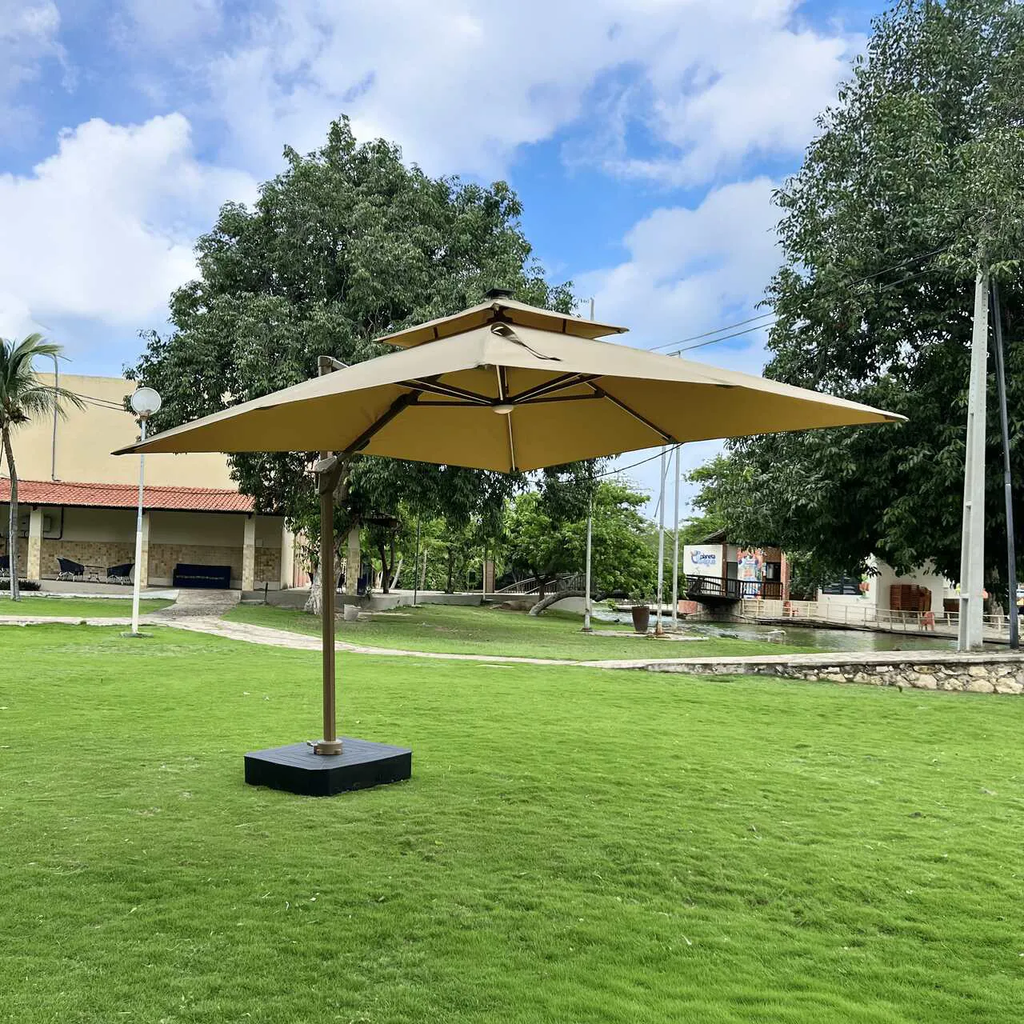 O ombrelone pode ser inclinado? Sim! Ele tem inclinação regulável e também pode girar 360°, garantindo sombra onde você precisar.