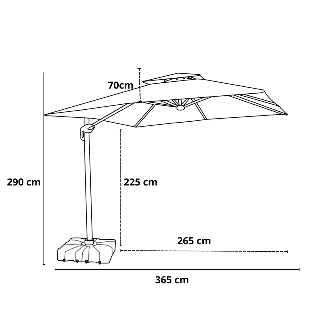 O Ombrelone Guarda Sol Gold Led Alumínio 3,0 x 3,0 C/ Base em 100 L é a escolha ideal para quem busca proteção solar premium aliada a um design moderno e elegante.